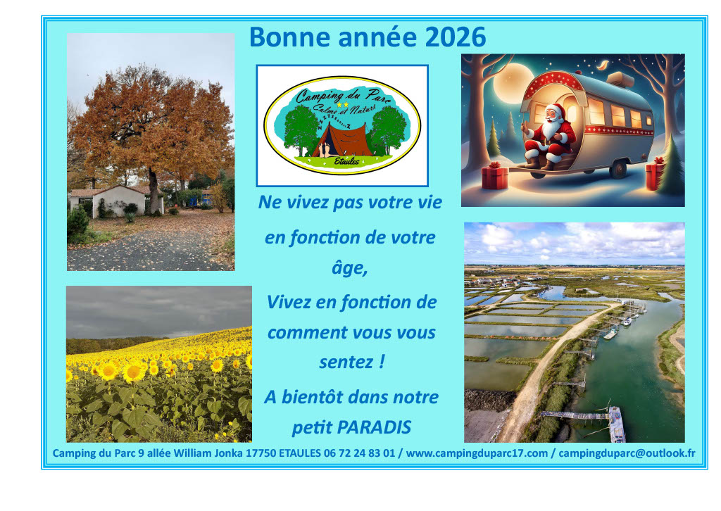 Nous vous présentons tous nos voeux pour cette nouvelle année, une bonne santé, beaucoup d’amour et d’amitié et bien sûr quelques jours de vacances dans notre petit camping