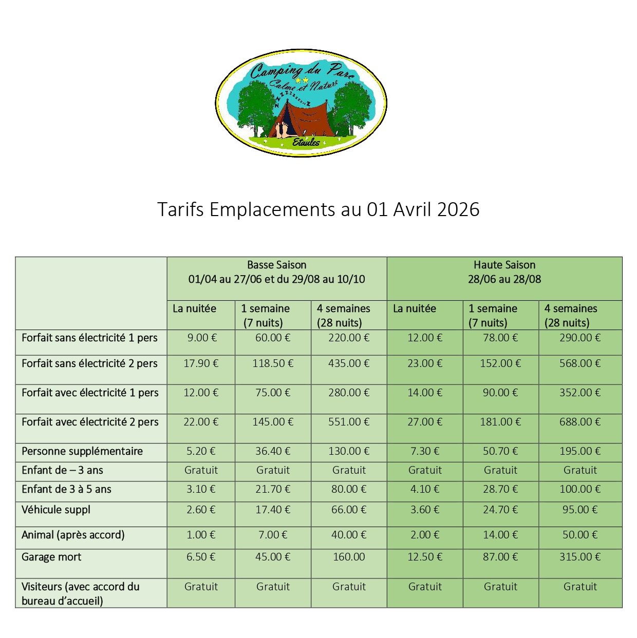 NOS EMPLACEMENTS AU CAMPING DU PARC **